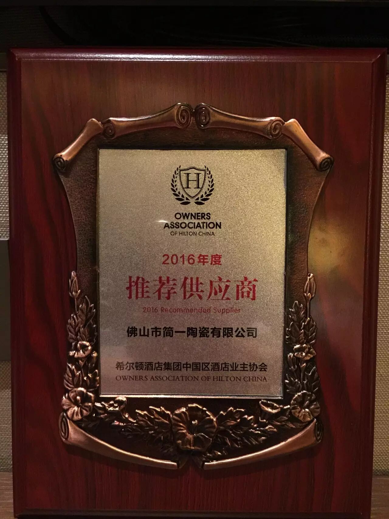 希尔顿酒店集团中国区酒店业主协会是由来自招商、保利、金茂等近百家在中国投资希尔顿酒店业主共同搭建的重要平台。在首届推荐供应商评选活动中,通过投资者的公开、共同的评选,简一大理石瓷砖荣获希尔顿集团墙地材料唯一推荐品牌。