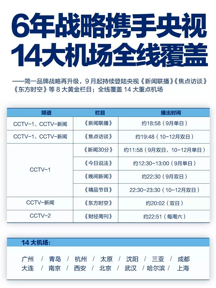 2017年9月起,简一继续在央视加大投入,在央视这个最公正的平台上,继续接受社会的监督。