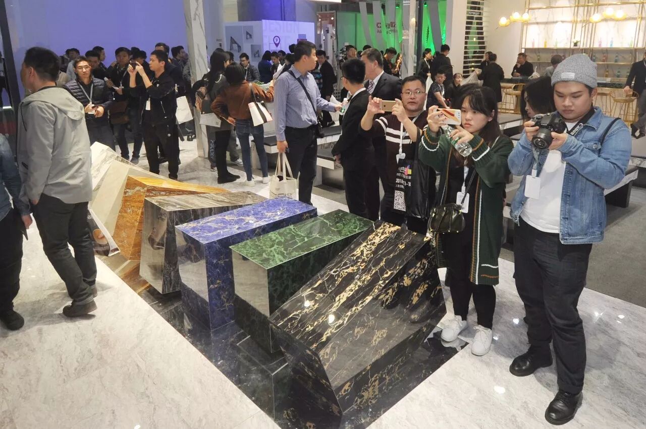 展位设计以大理石瓷砖的艺术性表达大理石瓷砖的功能性,利用全通体大理石瓷砖进行异型切割及组合,体现大理石瓷砖的可塑性及多元化表达与应用。让大理石瓷砖材料在创新驱动下升级更新,成为广州设计周的又一大亮点。
