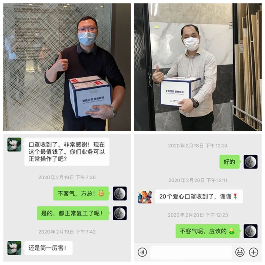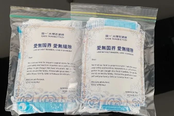 (△在国内疫情防控非常严峻的时期,简一总部收到了来自日本、印尼、卡塔尔服务商捐赠口罩等防疫物资,感受到来自简一国际家人们的关爱。GANI received much-needed supplies from Japan, Indonesia and Qatar and lots of encouragements from GANI global family during the difficult times.)