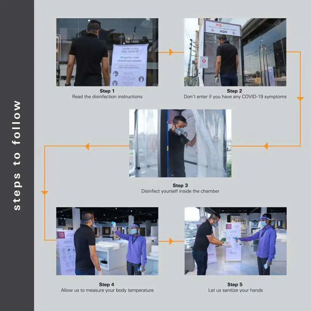 2020年初,新冠肺炎疫情席卷全球,在我国疫情得到控制之际,海外国家正竭力于抑制疫情的持续扩散并逐渐开始解封,恢复经济。孟加拉28日宣布,自5月31日至6月15日,在遵守防疫相关要求下,允许政府和私人部门重新开放,市区内公共交通可以恢复运营。简一孟加拉品牌服务商为更好保障客户的健康,经过探索许多方案,成为建材行业中首家在展厅引入使用消毒室设备的企业,按照世界卫生组织的建议,该设备将使用BP等级的99%的异丙醇(IPA),360度全方位覆盖的喷雾,对每位客户和员工进行消毒。