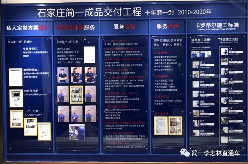 在简一全国终端市场中,石家庄简一成品交付工程走在前列,从2012年开始谋划成品交付工程的打造,率先摸索出一套系统化的管理服务流程,并于2018年开始在当地实施,经过两年半的时间逐步形成自己的特色。