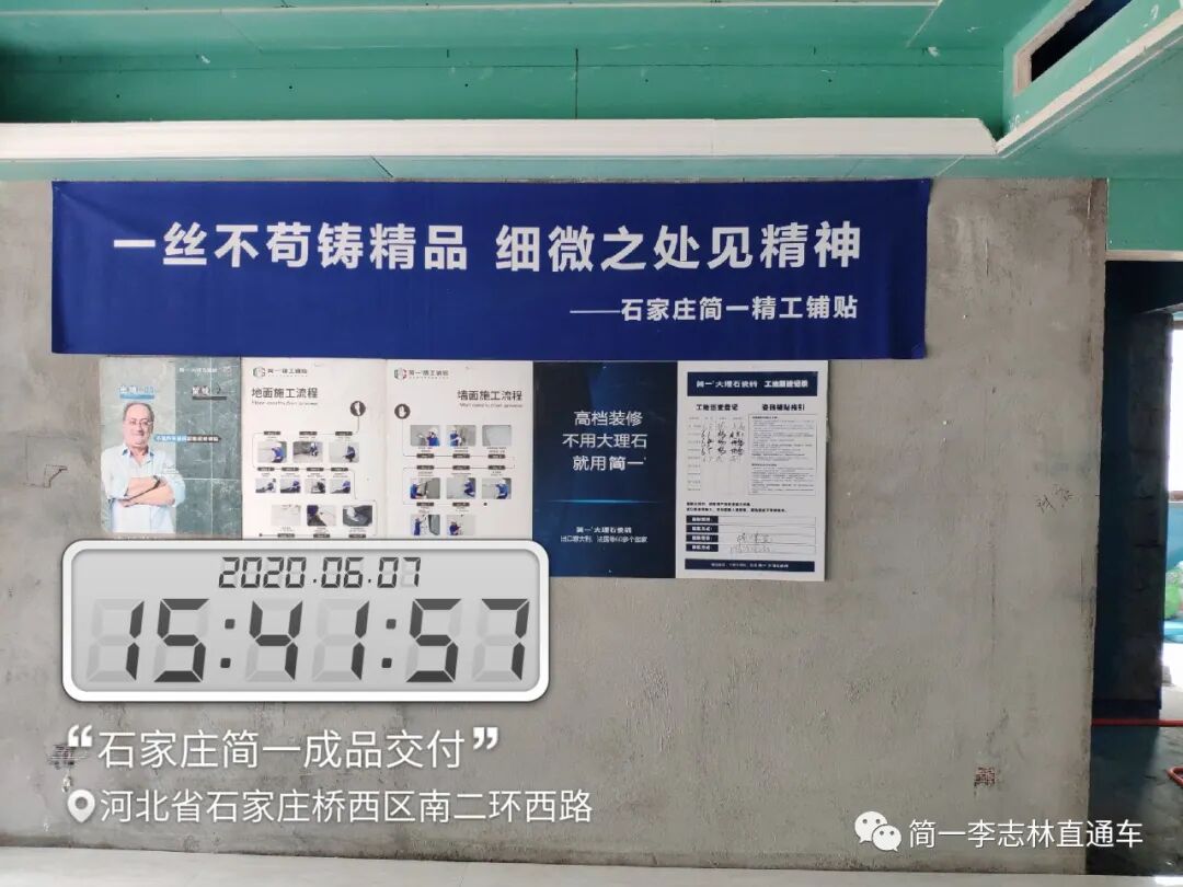 在石家庄简一的工地,首先映入眼帘的就是这句标语“一丝不苟铸精品 细微之处见精神”,这是石家庄简一的工匠精神,背后是石家庄简一做成品交付的初心,为的就是让消费者“更省心、更放心、更舒心”。