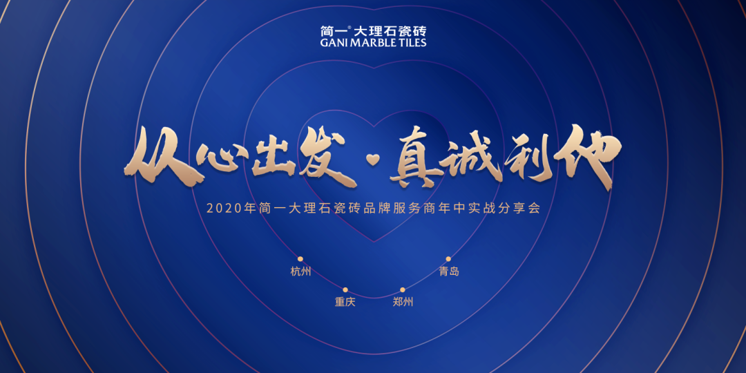 2020年7月16日-18日,简一大理石瓷砖通过线上+线下融合的创新形式,在杭州、重庆、郑州、青岛四地联动举办“从心出发·真诚利他”2020年简一大理石瓷砖品牌服务商年中实战分享会。