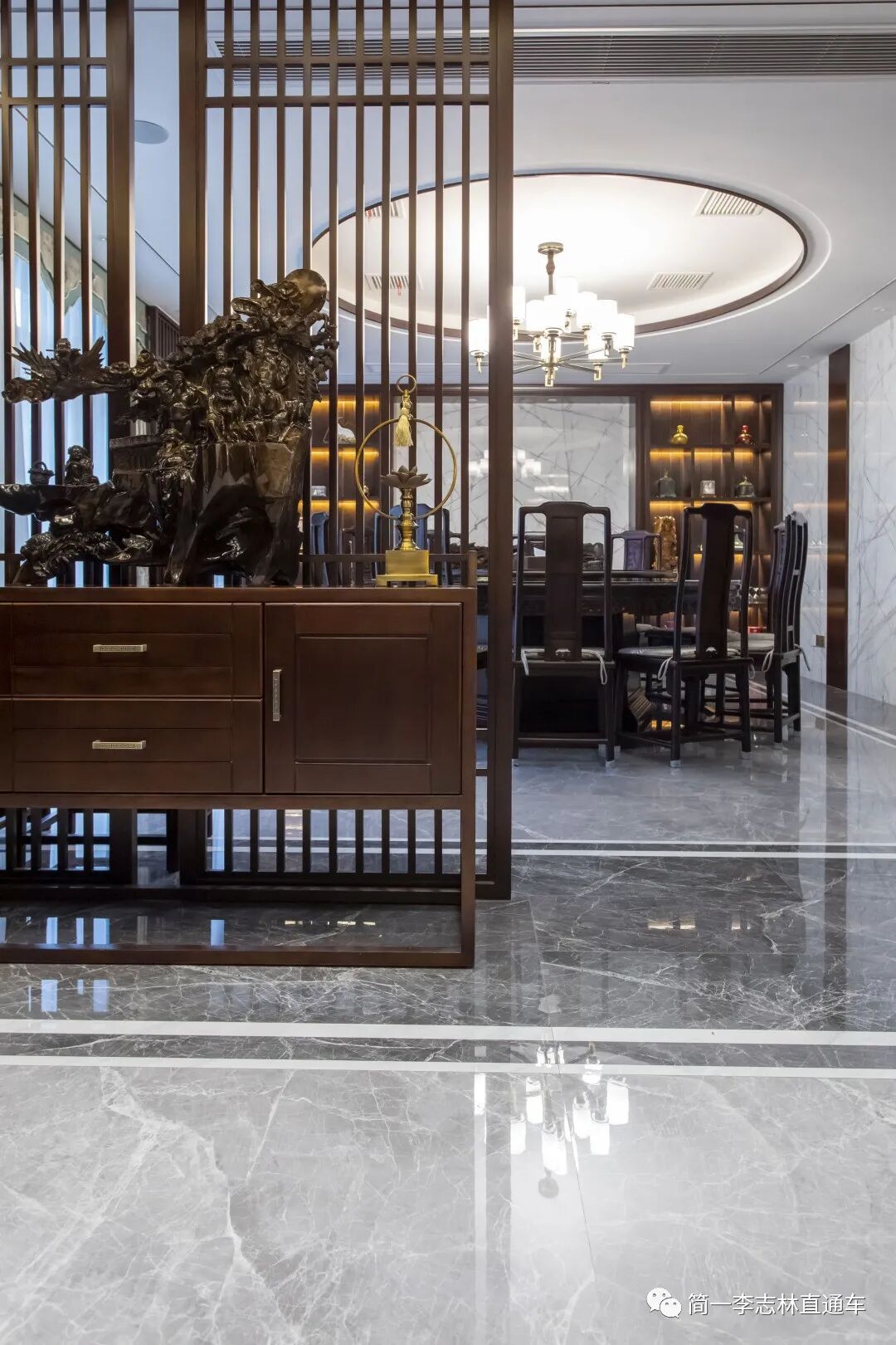 小简从门厅、玄关一路走来清晰感受到“天圆地方”设计理念圆形廊灯与方形框线实现了天地相呼应